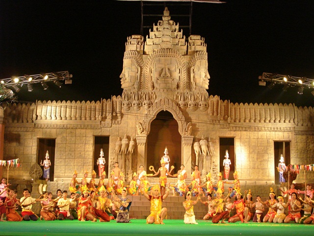 Su construcción típica khmer es única en el mundo, con tejados de barro y cuatro aristas para representar los cuatro puntos cardinales, su veneración por los espíritus de la creación, representa una postal de pequeños pueblos inimitable.