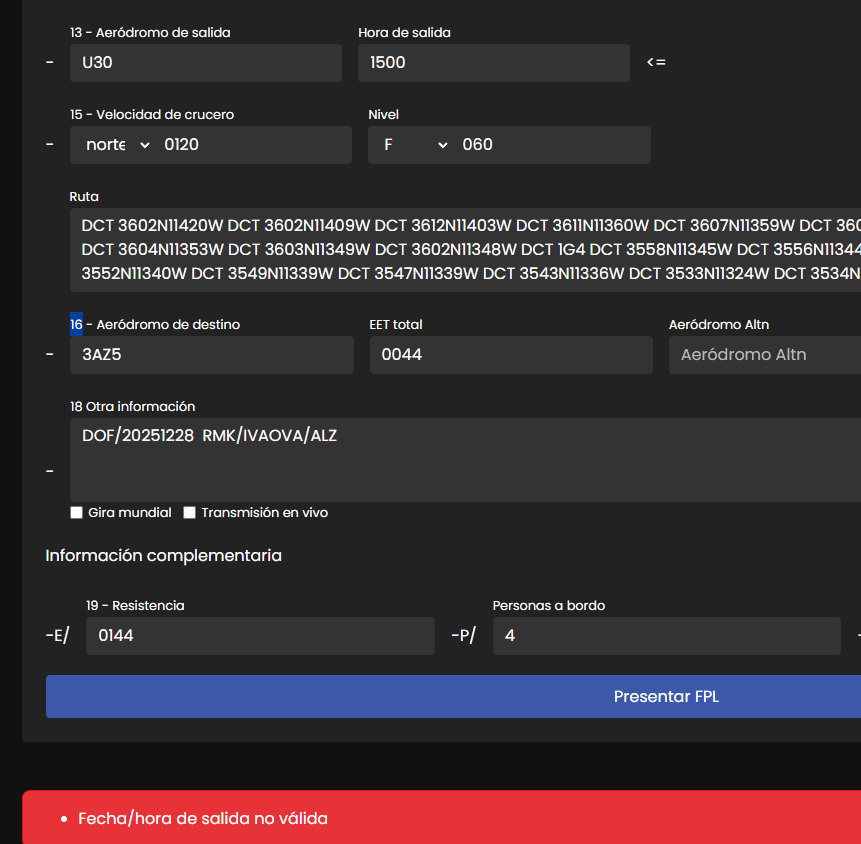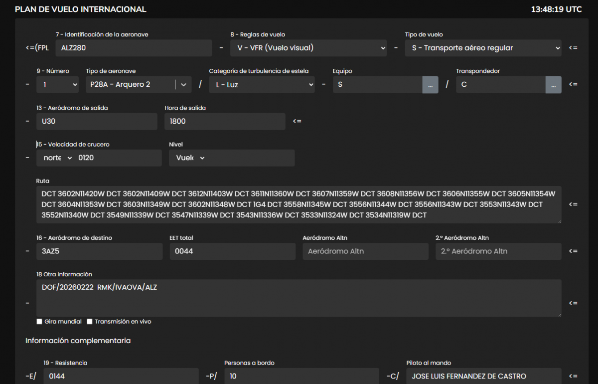 Solo recordar que los que volamos en IVAO pongamos en la casilla 18 al final RMK/IVAOVA/ALZ